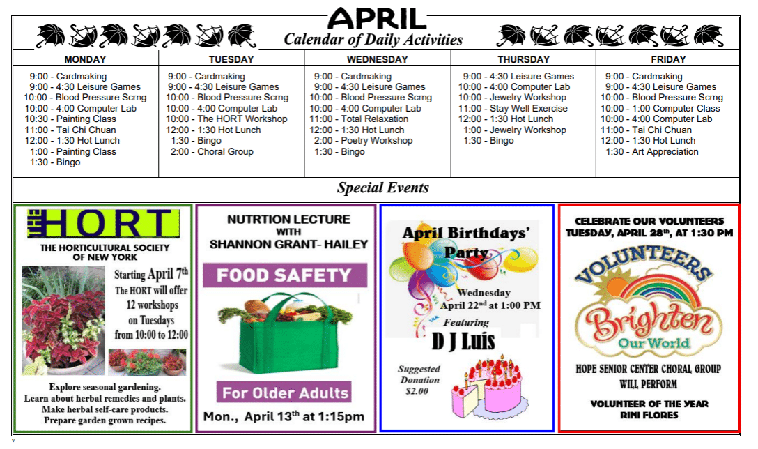 Calendar of Activites